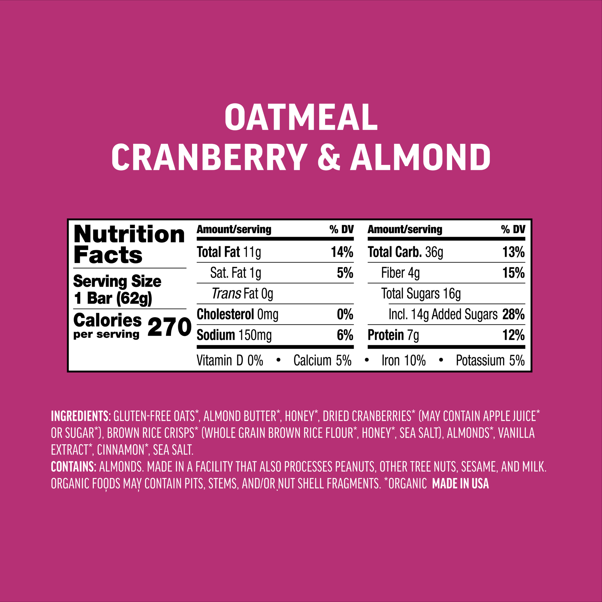 With 4 grams of plant-based protein and plenty of fiber, these bars help keep you full and focused through busy mornings, afternoon slumps, or long hikes. The combination of hearty oats, crunchy almonds, and naturally sweet cranberries creates a flavorful, nutrient-dense option you can enjoy daily.